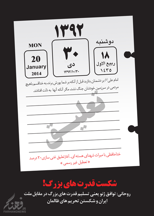 رسما غنی سازی 20 درصد تعلیق و توسط بازرسان سازمان انرژی هسته ای پلمپ شد . امروز